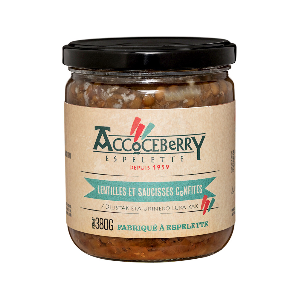 Les lentilles cuisinées aux saucisses confites est un petit plat d'hiver qui plaît au plus grand nombre. La Maison Accoceberry associe la lentille verte à tout ce qui fait la fierté du Pays Basque: un bouillon parfumé, des oignons, des carottes et des poireaux et une touche de piment d’Espelette pour relever le tout.