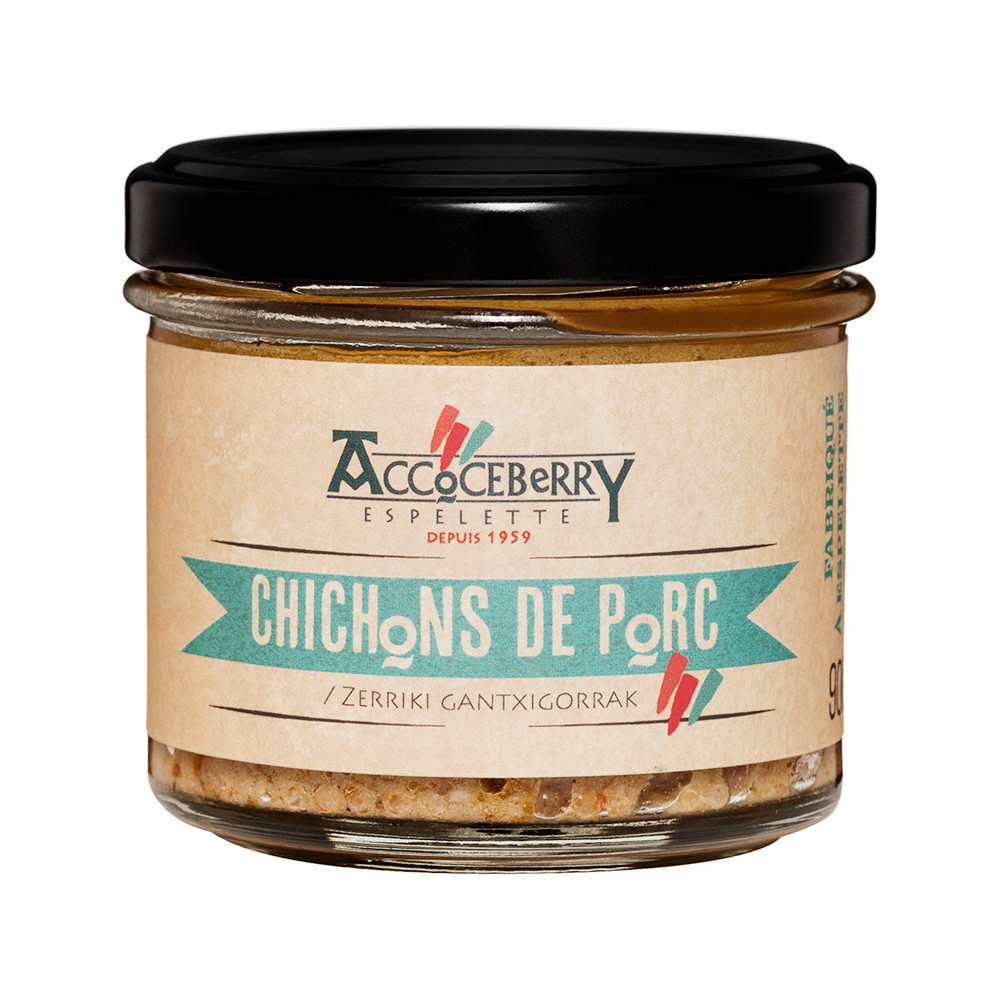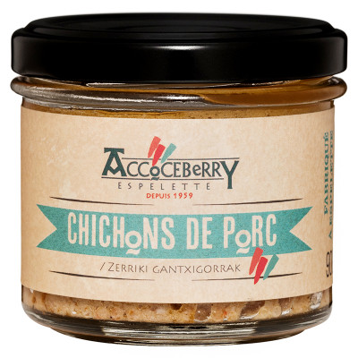 Cette recette traditionnelle et artisanale trouve son origine à l’occasion du “tue cochon” où dans une ambiance festive, familiale et conviviale, les familles du Pays Basque préparaient leurs pâtés, saucisses et confits pour l’hiver. La tradition veut que les chichons de porcs soient préparés avec des restes de viande issus de la cuisine des confits. Après dégraissage, il est haché, assaisonné épicé avec du piment d’Espelette, tout simplement.